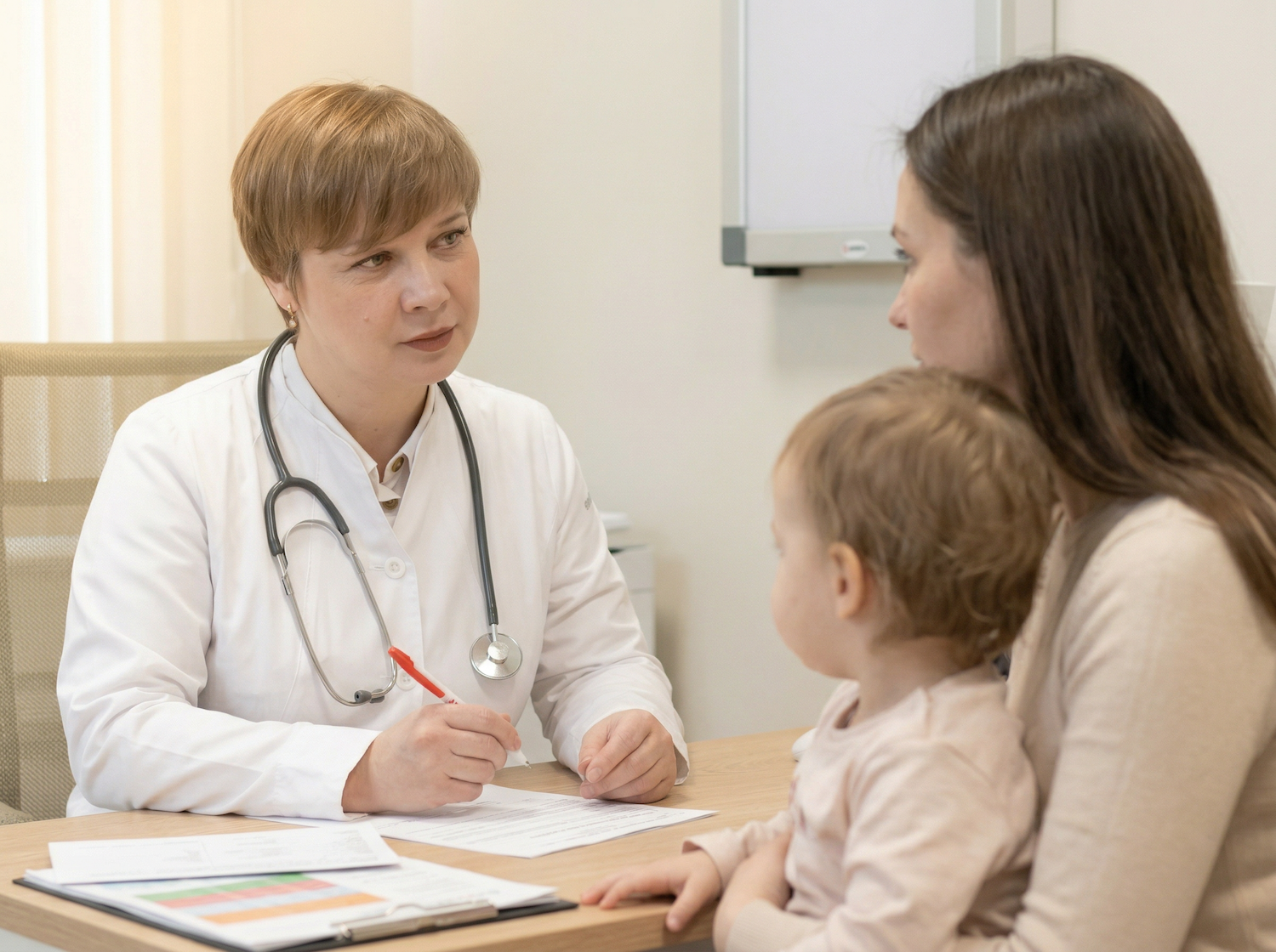 Врач информирует родителей, рассказывает о дальнейших шагах.