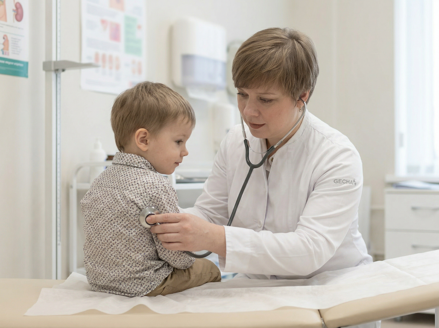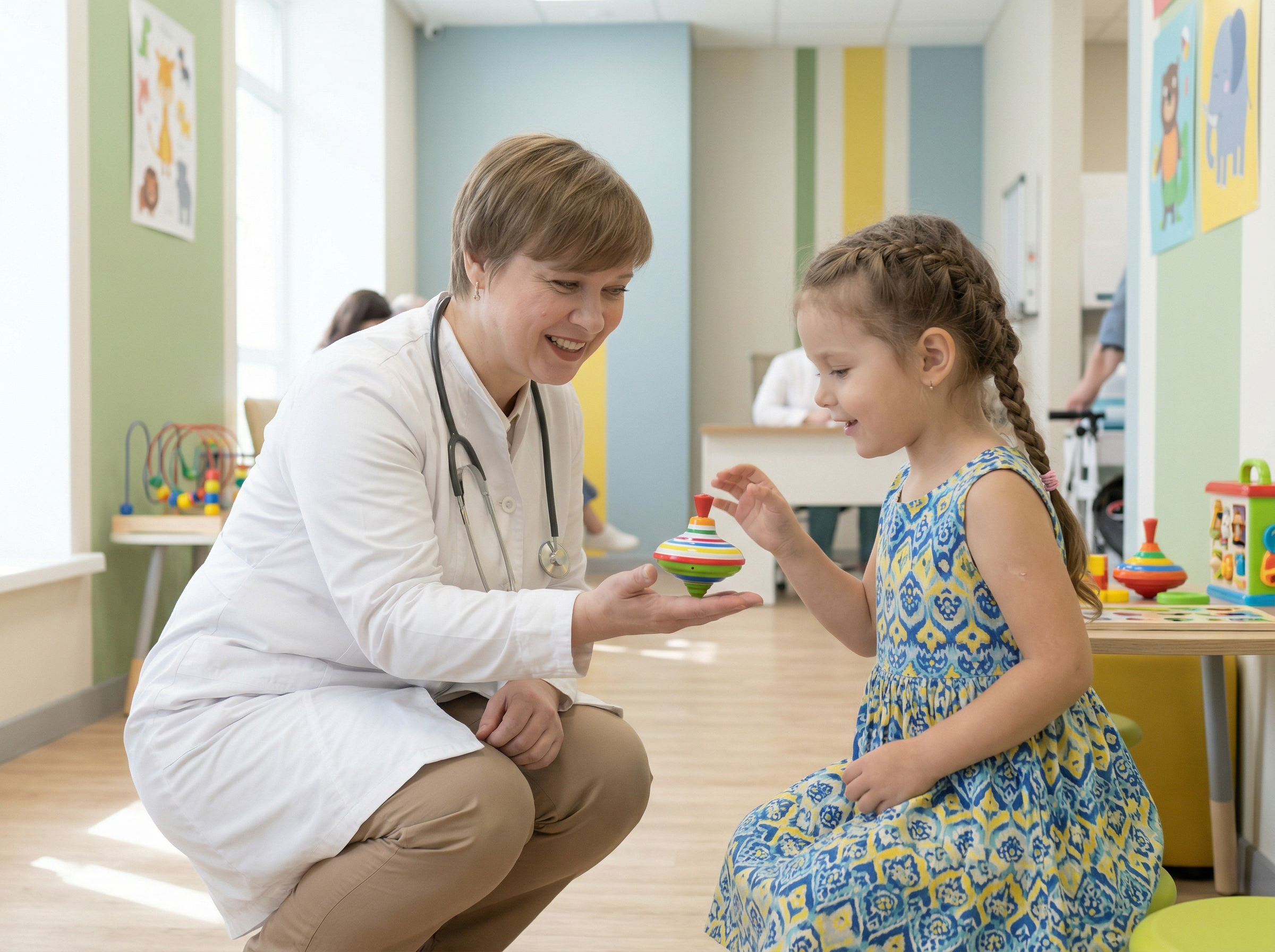 Ключевая задача - снизить тревожность малыша : врач может поговорить с ребенком на отвлечённые темы, использовать игрушку или привычный предмет, чтобы снизить уровень доверия и снизить страх перед осмотром. Это важно для успеха всего визита.
